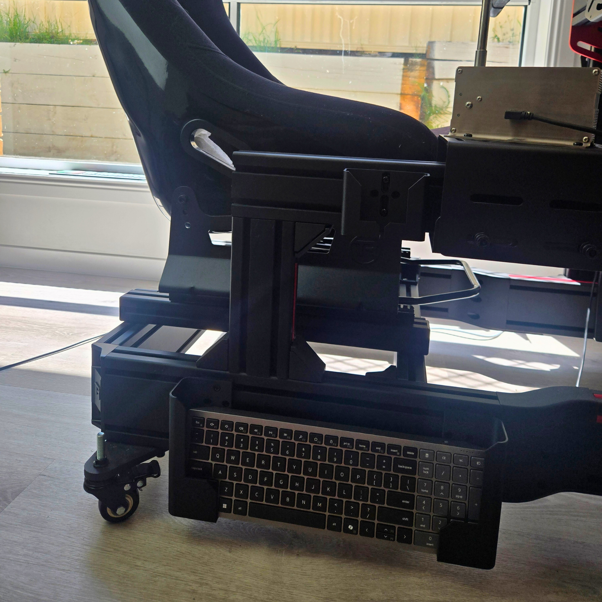 Keyboard mount for sim racing cockpits.