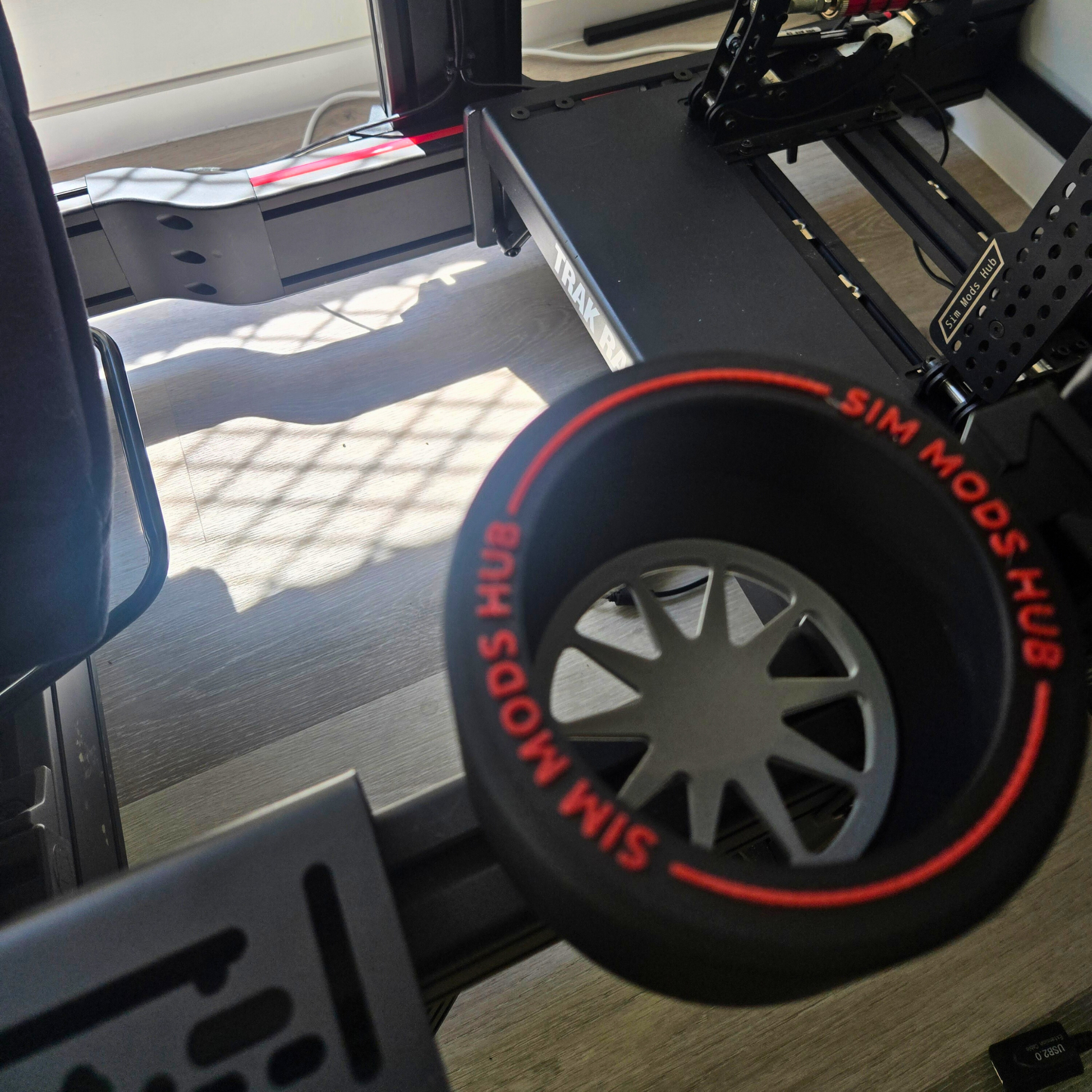 Cup holder inspired by F1 tire design—adds both function and flair to your cockpit.